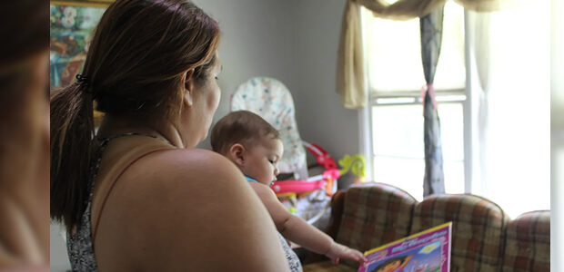 Ángela le lee La gran sorpresa de Dora a su hija Zoe, en su casa de Forest Park. Crédito de ...