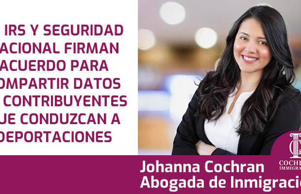 Tema: EL IRS Y SEGURIDAD NACIONAL FIRMAN ACUERDO PARA COMPARTIR DATOS DE CONTRIBUYENTES QUE CONDUZCAN A DEPORTACIONES Johanna Cochran Abogada ... -
