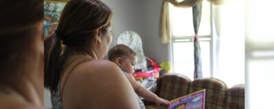 Ángela le lee La gran sorpresa de Dora a su hija Zoe, en su casa de Forest Park. Crédito de ... -