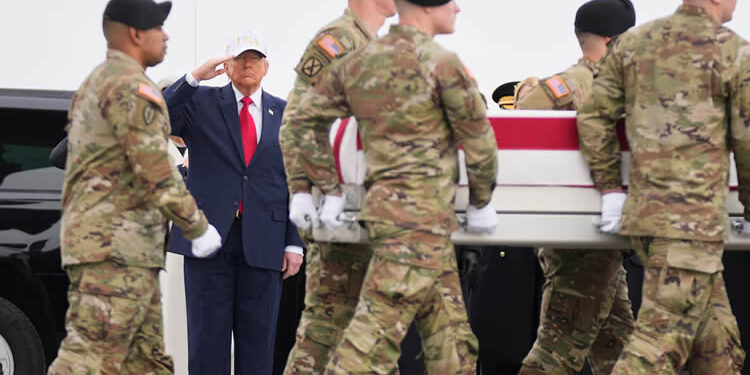 El presidente Donald Trump participó el sábado en la Base Aérea de Dover, en Delaware, en la ceremonia de traslado digno de los seis primeros militares fallecidos. Durante el acto, acompañado por el vicepresidente JD Vance, el secretario de Defensa Pete Hegseth y la primera dama Melania Trump, rindió homenaje con un saludo militar a cada uno de los féretros cubiertos con la bandera estadounidense.