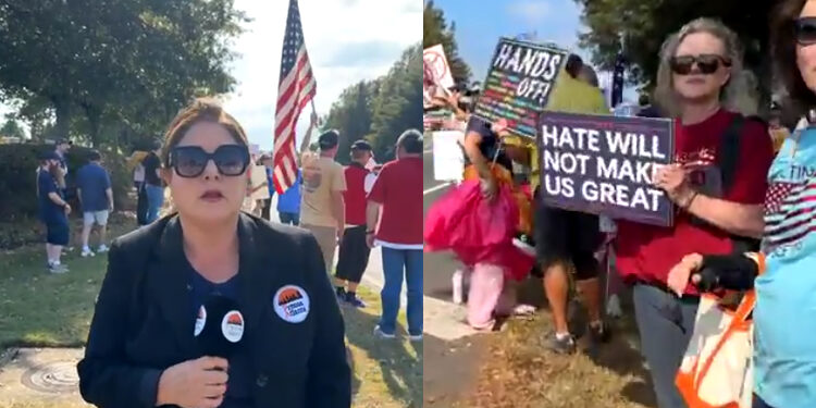 La marcha NO KINGS se lleva a cabo en Suwannee en la intersección de McGinnis Ferry Road y Peachtree Corners